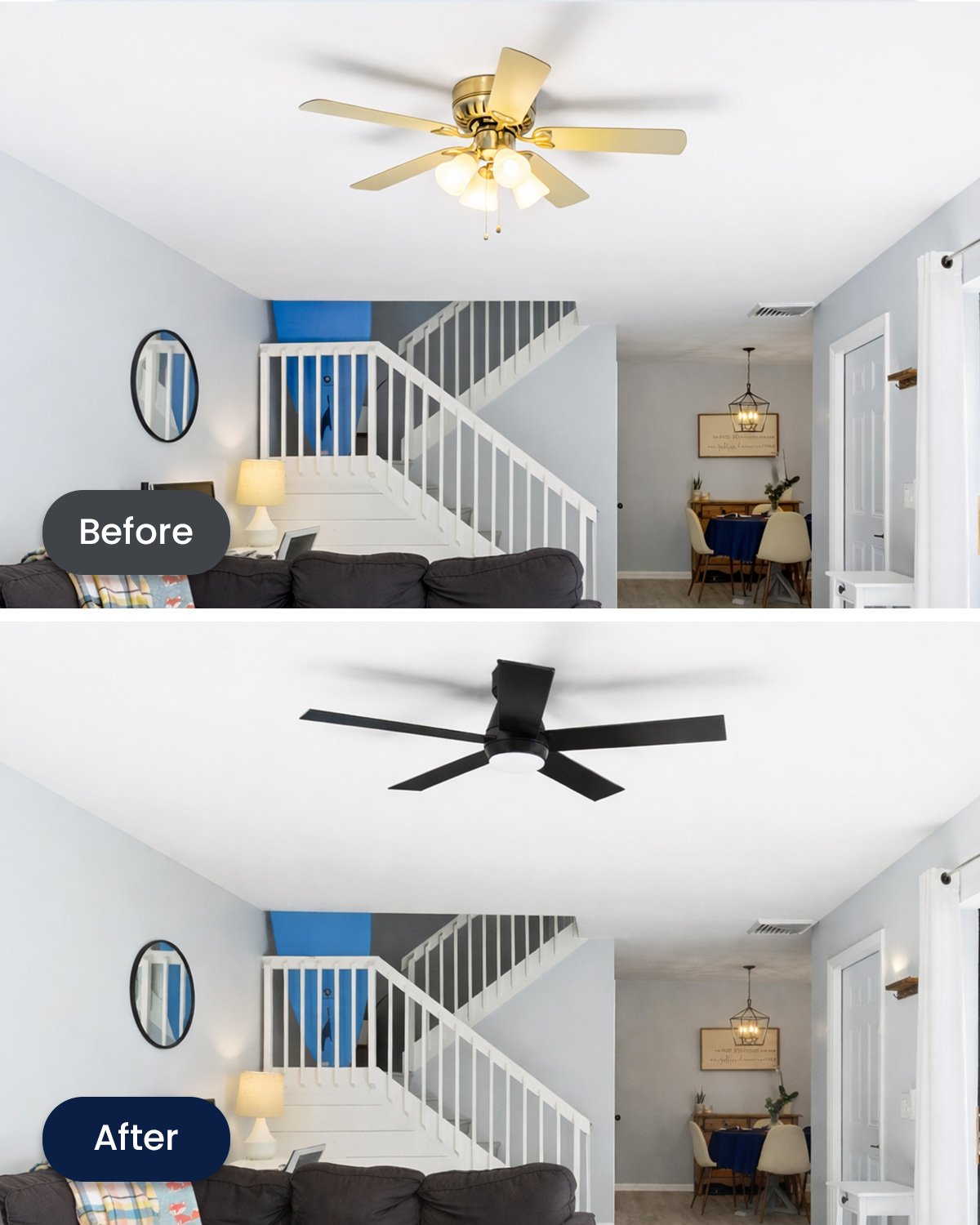 Replaced outdated ceiling fan, with new remote operated fan.